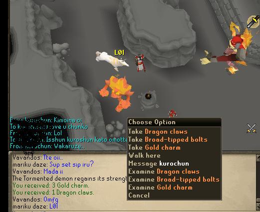 今は99defをメインに行動してるが後々やって見たいのはfire capeの再挑戦。 前回に比べ色んな意味でレベルうpしてると思う、 例えばprayer switchの技術。 これは何度も行ったtormented demonのお陰でしょうか。 しかしjad相手に通用しないかもしれないことは承知。 多分精神崩壊に近い緊張感まで追い込まれると全てが無意味になるかと。 過去にやった7回の中で一番近かったのは多分healersどもが表れて数分持ちこたえたぐらいです。 記憶が確かならhealerのmelee atkでbrewを飲むことに集中していたらアポン(°o°) 悩みに悩んでもhealerを引っ掛ける方法や一列にするテクニックなんて俺にないし、そもそもそんなの得られない。 そして気が付いたら強攻対策っという最も不利で不便な解決法しか見あたらなかった。集中力の途切れを少しでも減らすように99 defっという名の盾を作るのが先決で後はsteel skinなり何なりごまかせますぜ。高くてもいいから速めにjadを殺せるboltは無いのだろうか。