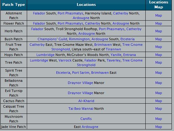 まずはfarming patchの場所。 育てたい作物はある特定のfarming patchでしか育てられません。(例えばranarr seedはherbだからherb patchで)